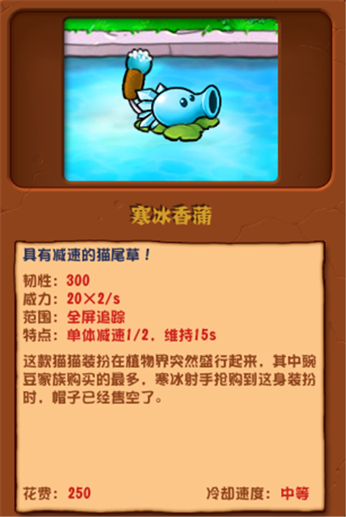 - 寒冰香蒲:自瞄控制,前期必备,一只就能防全场。